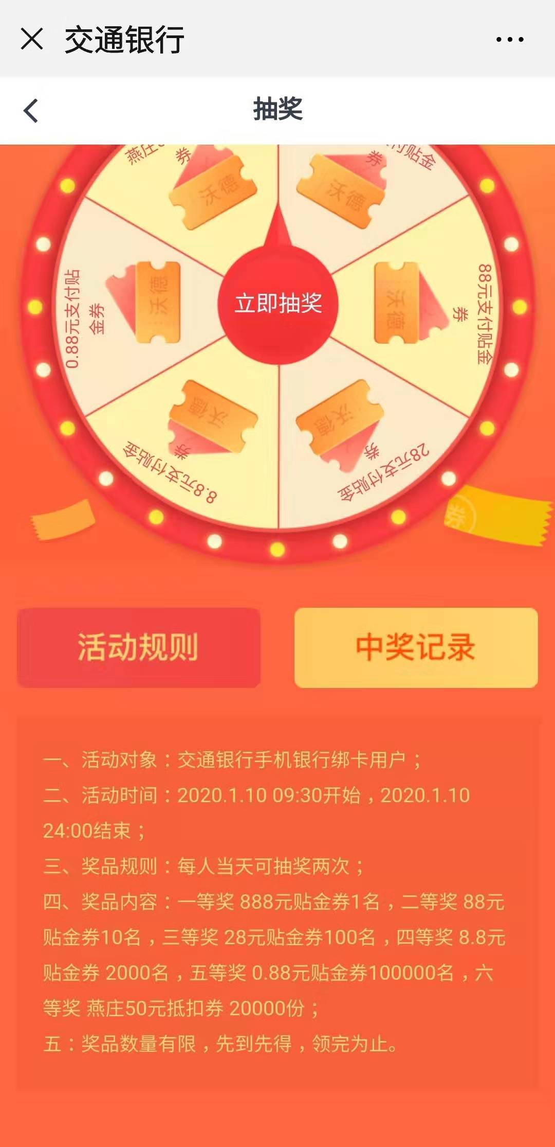 交通銀行此次抽獎(jiǎng)活動(dòng)可謂是一場(chǎng)盛宴,現(xiàn)場(chǎng)氛圍濃厚喜慶,抽獎(jiǎng)環(huán)節(jié)緊張刺激,令人熱血沸騰,獎(jiǎng)品豐富多樣,包括各種旅行用品、景點(diǎn)門票等,更有機(jī)會(huì)贏取一場(chǎng)難忘的旅行體驗(yàn),這不僅是一次簡(jiǎn)單的抽獎(jiǎng),更是一次心靈的洗禮,一次與自然美景的親密接觸。